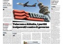 Tutti i giornali di oggi aprono con le reazioni da parte dei partiti alla vendita a Telefonica della quota di maggioranza di Telecom e alle ipotesi di cessione a Air France della maggioranza di Alitalia, e alla risposta del Presidente del Consiglio Letta, che promette di vigilare ma ricorda che si tratta di società private. I quotidiani sportivi aprono sulle tensioni al Milan e alla Juventus per i comportamenti di Balotelli e Pirlo nell’ultima giornata di campionato.