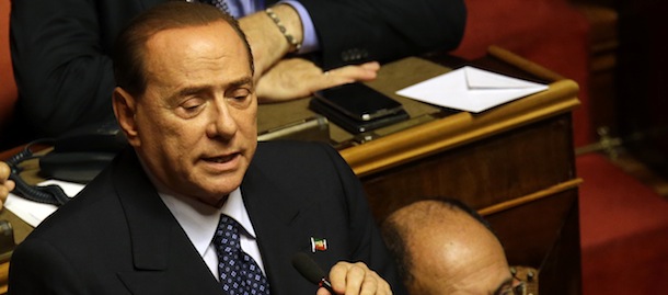 Silvio Berlusconi parla al Senato, 2 ottobre 2013. (AP Photo/Gregorio Borgia)