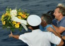 Questa mattina diverse imbarcazione di pescatori sono salpate da Lampedusa per andare a deporre una corona di fiori sul luogo dell’affondamento. Sempre in mattina il presidente della Camera Laura Boldrini ha visitato il centro di accoglienza di Lampedusa, dove, oltre ai 155 superstiti dell’affondamento, si trovano altri 900 migranti. Il centro avrebbe una capienza massima di 250 persone. Ieri sera, gli abitanti dell’isola hanno commemorato i morti del naufragio con una fiaccolata.