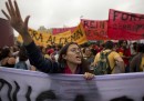 Gli insegnanti di Rio de Janeiro protestano dallo scorso 8 agosto contro le modifiche agli stipendi introdotte di recente, che prevedono un aumento solo per gli insegnanti che lavorano 40 ore a settimana, circa il 7 per cento dell’intero corpo docente. A loro si sono uniti studenti e sostenitori che chiedono in generale un miglioramento dell’istruzione in tutto il paese: il loro principale slogan è “l’istruzione non è una merce”. Durante la scorsa estate, in Brasile, ci sono state molte altre manifestazioni soprattutto contro l’aumento dei biglietti degli autobus, in concomitanza con le partite di calcio della Confederations Cup. Gli organizzatori dei Mondiali di calcio del prossimo anno e delle Olimpiadi del 2016, eventi che si terranno in Brasile, temono che si possano ripetere le manifestazioni e gli episodi violenti anche durante gli eventi sportivi, disincentivando l’arrivo di tifosi e appassionati.