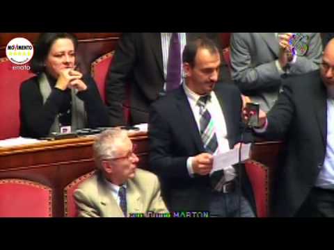 Durante la seduta del Senato di mercoledì 16 ottobre 2013, il parlamentare Bruno Marton del Movimento 5 Stelle è intervenuto durante la discussione del disegno di legge costituzionale sull’istituzione del Comitato parlamentare per le riforme costituzionali ed elettorali. A un certo punto del suo discorso, Marton ha detto di passare la parola a “Dario Fo”, che aveva appena citato, e Vito Crimi si è avvicinato al microfono per amplificare una registrazione. Il vicepresidente del Senato Maurizio Gasparri, che stava presiedendo la seduta, ha impedito il gesto a Marton e Crimi e ha detto: