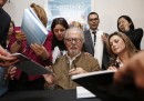 Un vivace assembramento di coppie, questa settimana: ci sono Hillary Clinton e Elton John che posano assieme dopo che Clinton ha ricevuto un premio dalla fondazione per la lotta contro l’AIDS di Elton John; il principe Harry che cerca goffamente di infilarsi un camice, mentre una ragazza lo fissa piuttosto divertita; due attori – una americana, l’altro olandese – che hanno recitato in cose diverse basate entrambe sul diario di Anna Frank. E poi c’è Kate, fotografata mentre abbozza un bagher durante una partita nel palazzetto intitolato alla sua nonna acquisita.