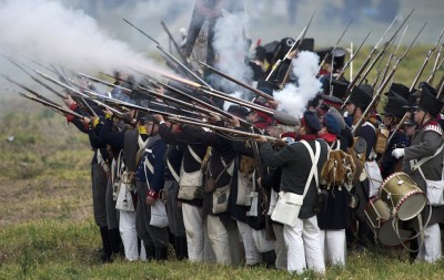 A French soldier fires his weapon during a re-enactement of the Battle of the Nations (Voelkerschlacht) in Leipzig, eastern Germany, on October 20, 2013. This year’s re-enactement marks the battle’s 200th anniversary, with 6000 enthusiasts taking part. The battle, between the remnants of Napoleon’s Grande Armee and a Russo-Prussian coalition, was Napoleon’s most crushing defeat. AFP PHOTO / JOHN MACDOUGALL (Photo credit should read JOHN MACDOUGALL/AFP/Getty Images)