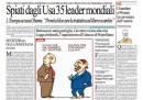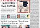 La maggior parte dei giornali di oggi si occupa in apertura delle nuove rivelazioni sulla vicenda delle intercettazioni della NSA, che avrebbe spiato 35 leader mondiali, e della reazione dell’Europa che minaccia di bloccare le trattative sul libero scambio. Il Mattino, il Fatto e Europa seguono invece la politica italiana, con la mossa di Berlusconi per ridare il controllo del PDL ai suoi fedelissimi, e con l’iniziativa del Presidente della Repubblica Napolitano per cercare di accelerare i tempi per l’approvazione di una nuova legge elettorale.