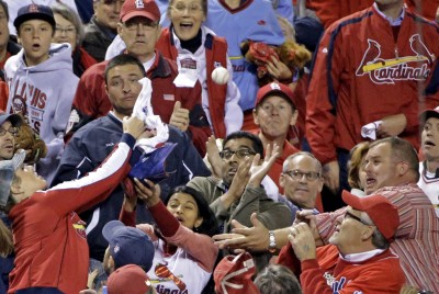 John Koenig takes a photo as players warm up for Game 5 of baseball’s World Series between the Boston Red Sox and the St. Louis Cardinals Monday, Oct. 28, 2013, in St. Louis. (AP Photo/Charlie Riedel)