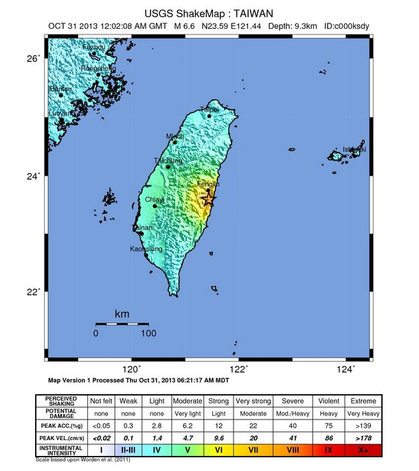 Poco dopo le 20 di giovedì 31 ottobre (in Italia erano le 13:02), c’è stato un terremoto di magnitudo 6.3 nella parte sud-orientale di Taiwan, nella contea di Hualien (lo statunitense USGS aveva inizialmente valutato magnitudo 6.7). La scossa è stata percepita in buona parte del paese, spiegano i media locali, ma non è ancora chiara l’entità dei danni causati dal terremoto.