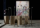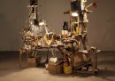Un’altra opera presente è infatti Economy bar, un bar (vero) che si potrà frequentare per tutto il periodo della mostra. La struttura è formata da oggetti reali come bottiglie, bicchieri, bancone e sedie e da oggetti che ne esaltano il significato – come tutte le bottiglie vuote che verranno bevute durante la mostra, i video che raccontano l’installazione e strumenti musicali. Il bar si trasforma in un organismo che cambia con il tempo e a seconda della frequentazione o meno dei visitatori. Il cambiamento e la trasformazione, due temi importanti per Roth, sono presenti anche in un altro filone di lavori costruiti con materiali “biodegradabili”. In Islands sarà possibile vedere Selbstturm, torri alte più di 5 metri e costruite da piani di piccole sculture autoritratto di cioccolato: un materiale dall’odore molto forte e riconoscibile, capace di cambiare di stato facilmente con piccole variazioni di temperatura.