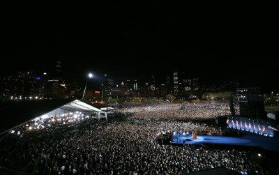 during an election night gathering in Grant Park on November 4, 2008 in Chicago, Illinois. After nearly two years of presidential campaigning, U.S. citizens went to the polls today to vote in the election between Sen. John McCain (R-AZ) and Sen. Barack Obama (D-IL).