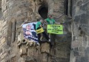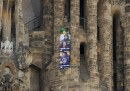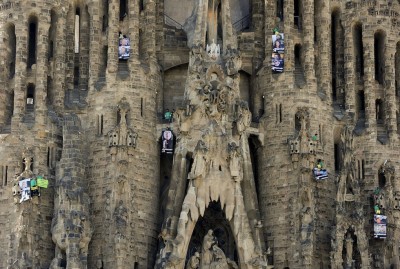 Verso le 9.30 della mattina di venerdì 8 novembre, circa dieci attivisti di Greenpeace si sono calati dalle torri della facciata della Natività della Sagrada Familia, la celebre basilica cattolica in costruzione a Barcellona, in Catalogna (Spagna), per chiedere la liberazione dei 30 arrestati dalle autorità russe lo scorso 19 settembre. Le 30 persone in attesa di giudizio sono 28 attivisti di Greenpeace e 2 giornalisti freelance, ed erano state fermate per avere cercato di salire a bordo di una piattaforma petrolifera russa nel Mare della Pečora, nell’Artico. Ora si trovano in un carcere di San Pietroburgo e sono accusati di teppismo (prima erano accusati di pirateria). Gli attivisti hanno srotolato uno striscione con scritto “libertà” in castigliano, catalano e inglese, e le foto degli attivisti arrestati. Poco dopo sono arrivati sul posto i pompieri e numerose pattuglie della polizia. Verso le 11 gli attivisti sono rientrati nella basilica e sono stati fermati dalla sicurezza.