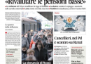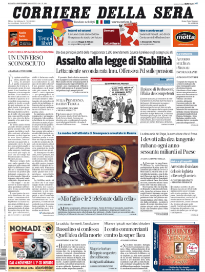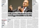 Dei tre maggiori quotidiani nazionali, Stampa e Corriere si dedicano alle iniziative del governo sull’economia (la Stampa sceglie un titolo che non sembra nuovissimo, sull’IMU, ma di fatto la questione è rimasta aperta ogni giorno); mentre Repubblica resta più fedele alle sue priorità consuete, e titola a cinque colonne sulla misteriosa richiesta di grazia per Berlusconi che però non si sa se sia stata presentata o no (da cui l’uso della formula canonica, “il giallo” della grazia). Entrambi i maggiori giornali del centrodestra seguono lo stesso criterio, e si dedicano simmetricamente ai presunti leader del centrosinistra, uno attaccando Renzi e l’altro attaccando Carlo De Benedetti, editore di Repubblica. Sui quotidiani sportivi, ci si preoccupa del Milan.
