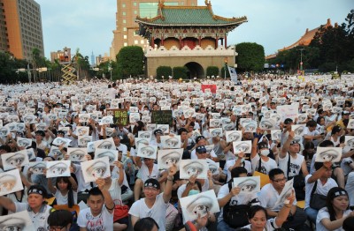 Il 3 agosto, dopo una serie di altri appelli online, decine di migliaia di sostenitori dell'”esercito delle magliette bianche” (circa 250mila secondo la stampa locale) si ritrovarono di fronte all’ufficio presidenziale di Taiwan: molti di loro tenevano in mano il disegno di un occhio sanguinante – un’allusione al governo del Grande Fratello del romanzo “1984” di George Orwell – e cantavano canzoni sulla rivoluzione tratte dal musical “Les Miserables” (i testi erano stati riscritti in dialetto taiwanese). La protesta ottenne i suoi risultati: nel giro di pochi giorni il governo di Taiwan decise di istituire una commissione speciale per indagare sui casi di cattiva condotta militare. Alcuni provvedimenti, comunque, erano già stati presi: il ministro della Difesa si era dimesso e 18 funzionari dell’esercito erano stati accusati per essere coinvolti nella morte di Hung Chung-chiu.