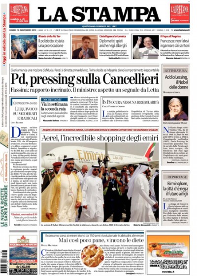 Le polemiche sul ministro Cancellieri, gli aerei degli sceicchi, e la morte di Doris Lessing