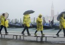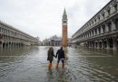 A causa della pioggia, martedì mattina l’alta marea a Venezia ha raggiunto i 124 centimetri sullo zero mareografico (cioè il livello medio del mare misurato nel 1897) ed è rimasta al di sopra dei 120 centimetri fino alle 12. Circa il 37 per cento del centro storico è stato allagato, e in particolare Piazza San Marco, con oltre 40 centimetri d’acqua che hanno costretto passanti e turisti a muoversi sulle passerelle di legno. Secondo i meteorologi la situazione sarà simile anche domani, dove la marea supererà i 120 centimetri verso le 11.
