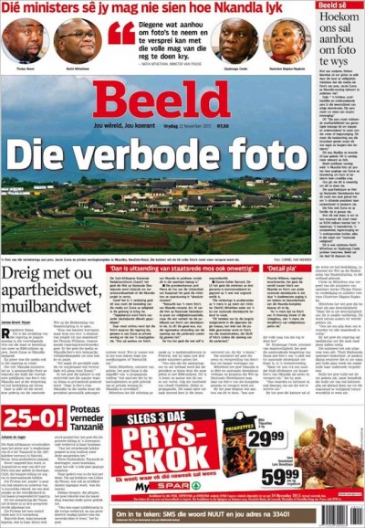 Un gruppo di editori sudafricani ha definito “ridicola” la minaccia del governo di arrestare chiunque diffondesse immagini o video della residenza e questa mattina ha sfidato il divieto pubblicandone le foto. Il Times ha titolato: “So, arrest us” (“Ora arrestateci”), mentre Star ha pubblicato una foto dell’edificio con una croce rossa sopra con scritto: “Look away! What ministers don’t want you to see” (“Guardate da un’altra parte! Quello che i ministri non vogliono farvi vedere”). Secondo il governo il divieto è giustificato da motivi di sicurezza.