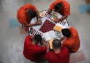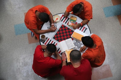 Il fotografo di Getty Images John Moore ha realizzato un reportage nel centro di detenzione di Adelanto, in California. La struttura è la più grande e la più recente costruita in California dall’Immigration and Customs Enforcement (ICE), l’agenzia del ministero della Sicurezza interna degli Stati Uniti che si occupa della sicurezza dei confini e dell’immigrazione illegale. Il centro ospita una media di 1.100 migranti irregolari – ha circa 1.200 posti letto – in attesa di giudizio o di espulsione dagli Stati Uniti. Un detenuto rimane nella struttura in media 29 giorni. È organizzata come un carcere federale, con celle, aree comuni e centri ricreativi; alcuni detenuti sono rinchiusi in isolamento per motivi di sicurezza e gli agenti passano loro il cibo e le eventuali telefonate attraverso le sbarre.