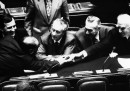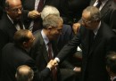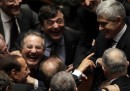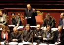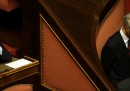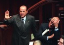 Silvio Berlusconi è stato eletto per la prima volta in Parlamento il 27 marzo 1994. Ne è uscito oggi, 27 novembre 2013, quasi vent’anni dopo. Circolano due grandi punti di vista sulla decadenza di Berlusconi da senatore. Il primo è quello per cui la decadenza segni un passaggio storico per la storia politica italiana e sia la rappresentazione concreta di una “decadenza” più estesa di quella che riguarda semplicemente il Senato: una decadenza politica, frutto del logoramento di questi anni, dei discutibili risultati dei governi che Berlusconi ha guidato, del lungo elenco di sodali e alleati – da Casini a Fini ad Alfano a molti altri – che negli anni hanno preso altre strade. Il secondo punto di vista è quello per cui la decadenza determini un cambiamento meno importante di quel che sembri: perché soltanto pochi mesi fa alle elezioni Berlusconi ha ricevuto di nuovo un numero rilevante di voti, perché non serve stare in Parlamento per essere un leader politico (non sono in Parlamento due dei politici più influenti in Italia, Renzi e Grillo) e poi perché, come si è detto a lungo fino a farlo diventare un luogo comune, superare Berlusconi non implica necessariamente il superamento del berlusconismo. Una sola cosa è certa, rispetto al futuro, da domani in poi: fotografie come queste, che raccontano il ventennio di Berlusconi in Parlamento, non le vedremo più.