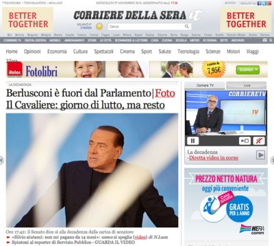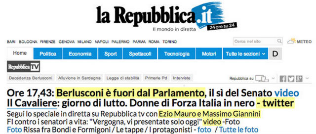 Mercoledì 27 novembre il Senato ha votato la decadenza da parlamentare di Silvio Berlusconi. La notizia è stata data subito e con grande enfasi da tutti i siti di informazione italiani e da diverse testate internazionali.
