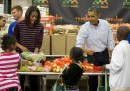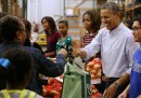 Sempre mercoledì Obama, la moglie Michelle, le figlie e la suocera Marian Robinson hanno aiutato un’associazione di volontariato a impacchettare e distribuire cibo alle persone bisognose in vista del Ringraziamento. Mentre il presidente si occupava delle cipolle, Michelle distribuiva carote e le figlie mele e dolcetti.