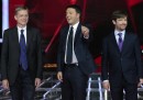 Venerdì 29 novembre, a partire dalle 21, si è tenuto su Sky Tg24 un confronto televisivo fra i tre candidati a segretario del Partito Democratico alle primarie dell’8 dicembre: Matteo Renzi, Gianni Cuperlo e Pippo Civati. Il dibattito, condotto da Gianluca Semprini, era trasmesso in diretta dall’X Factor Arena, il grande teatro in cui viene registrato il programma X Factor alla periferia nordest di Milano. Anche guardando le foto di ieri sera si capisce qualcosa della personalità dei candidati: c’è chi unisce le mani, chi sembra un po’ a disagio in giacca e cravatta e chi è più facile cogliere in qualche posa che non ci si aspetta.