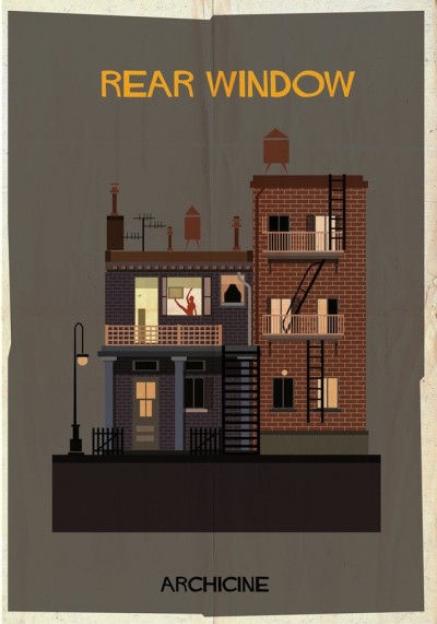 Che si tratti di film dove l’elemento architettonico è centrale, come La finestra sul cortile, o al contrario meno presente come Moonrise Kingdom, gli edifici di questi poster sono la prova che anche lo spazio è in grado di raccontare una parte importante della storia. Alcuni di questi poster raffigurano edifici ricostruiti sul set, come quello de La finestra sul cortile, di dimensioni eccezionali per l’epoca. Altri sono realizzati al computer, come la casa degli Incredibili, ispirata però ad un’abitazione vera. Altri ancora raffigurano edifici esistenti e progettati da famosi architetti: la casa del film di Tom Ford, A Single Man, è la Glendale residence costruita nel 1949 da John Lautner; la casa di Pierce Morehouse Patchett in L.A. Confidential è la Lovell House dell’architetto austriaco Richard Neutra; la villa che esplode alla fine di Zabriskie Point di Michelangelo Antonioni fu progettata da Paolo Soleri; uno dei set del film Il disprezzo di Jean-Luc Godard è Villa Malaparte a Capri, progettata da Adalberto Libera.