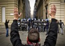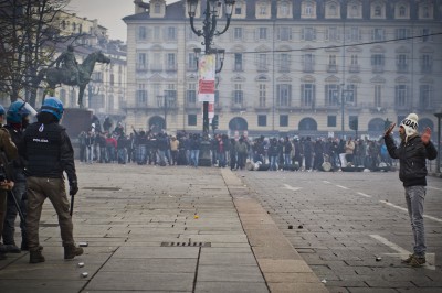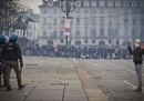 La situazione più difficile nella mattina è stata a Torino, dove i manifestanti hanno bloccato le vie del centro e alcune strade che portano verso la città. In piazza Castello, quindi nel pieno centro storico, ci sono stati alcuni scontri: i manifestanti hanno lanciato pietre e bottiglie incendiarie verso la polizia, che ha risposto con lacrimogeni per disperdere la folla. Nella vie del centro i manifestanti hanno lanciato pietre contro alcune vetrine e palazzi delle istituzioni, compreso quello della Regione. Un ragazzo di 19 anni di Avigliana (Torino) è stato arrestato con le accuse di violenza e resistenza a pubblico ufficiale e di danneggiamento aggravato. Secondo la Stampa, ci sono 14 feriti tra le forze dell’ordine.