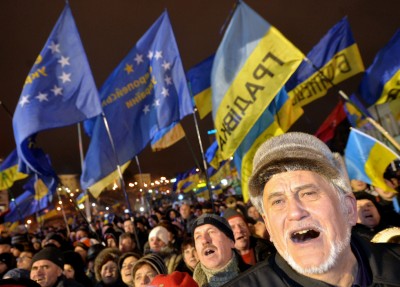 Migliaia di persone hanno manifestato contro il governo dell'Ucraina e il nuovo patto con la Russia, che avvicina i due paesi complicando i rapporti con l'Unione Europea
