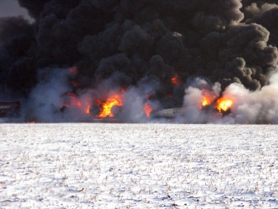 Lunedì 30 dicembre due treni si sono scontrati a ovest di Casselton, in North Dakota, negli Stati Uniti, a circa 40 chilometri da Fargo. Uno dei due treni trasportava materiale combustibile, anche l’altro era un treno merci: non ci sono morti né feriti ma un paese di 300 abitanti a poca distanza è stato evacuato (e tutte le persone che vivono nel raggio di 8 chilometri sono state invitate ad allontanarsi). L’impatto ha causato un’enorme colonna di fumo e fiamme che si è alzata dal luogo dello scontro, e che è stata alimentata da continue esplosioni successive. Una portavoce del North Dakota Department of Emergency Services ha fatto sapere che 50 vagoni del treno che trasportava combustibile sono in buone condizioni ma altri 56 sono da considerare “a rischio”.