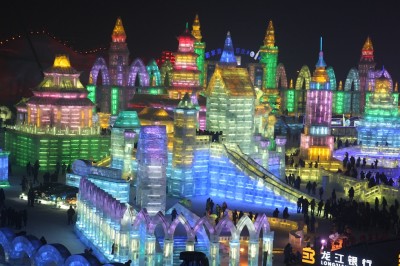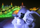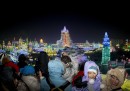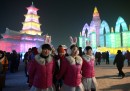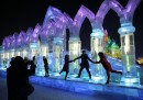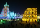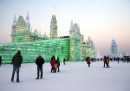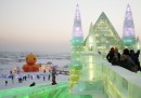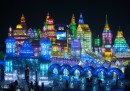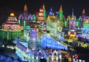Nella grande città industriale di Harbin, nel nordest della Cina, dal 1984 ogni anno si tiene il Festival internazionale della scultura di ghiaccio, in occasione del quale viene costruita un’intera città fatta di grandi sculture di ghiaccio, illuminate da giochi di luce. Quella inaugurata domenica 5 gennaio è la trentesima edizione del festival – la città di ghiaccio rimarrà aperta fino a quando le temperature lo consentiranno – e il tema scelto è “Ghiaccio globale e sogni di neve”, per cui è stato costruito un grande castello di ghiaccio. Oltre a girare la città e assistere agli spettacoli pirotecnici, i visitatori possono scendere per i lunghi scivoli di ghiaccio. Durante il festival ci sono anche gare di scultura di ghiaccio e neve: artisti provenienti da tutto il mondo costruiscono le proprie opere con seghe elettriche, martelli e scalpelli.
