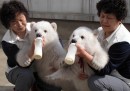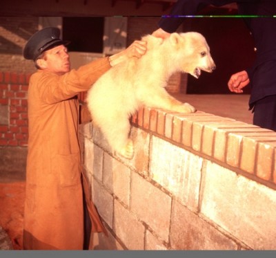 Un po’ è l’orso, che non a caso è ispiratore degli animali di pezza per antonomasia; un po’ è che delle volte, negli zoo, non è che gli animali ti obbediscano da soli. E insomma, rimbalzando tra recenti notizie di orsi e archivi fotografici, ci siamo accorti che il principale rapporto che passa tra uomini e orsi in cattività – o almeno il più fotografato – è che i primi si occupano di spostare i secondi (soprattutto quando sono piccoli, i secondi, e grandi i primi). Con maggiori e minori cure e goffaggini.
