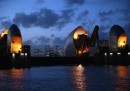 La Thames Barrier è un dispositivo che regola la portata di acqua del fiume Tamigi, a Londra. Il suo sistema di dighe è stato costruito tra il 1974 e il 1984 allo scopo di proteggere da eccezionali ondate di alta marea alcuni luoghi di grande importanza storica e politica della capitale britannica. Martedì 7 gennaio la barriera del Tamigi è stata alzata per l’11esima alta marea consecutiva a causa delle forti piogge che hanno colpito Londra negli ultimi giorni (a Chersey, alla periferia di Londra, il Tamigi è esondato, provocando qualche disagio e spingendo diversi cigni a nuotare per le vie del paese): il suo frequente uso, scrivono alcuni giornali britannici tra cui il Telegraph, è un fatto eccezionale e non si era mai verificato con questa intensità dal 1983, anno del suo primo utilizzo.