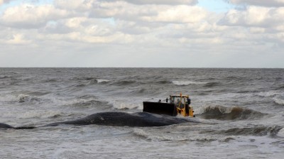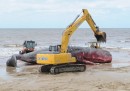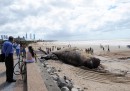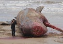 Il grosso capodoglio spiaggiato in Uruguay
