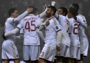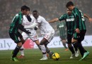 Al quarantunesimo minuto del primo tempo Berardi si è inserito di nuovo tra due difensori del Milan, Bonera ed Emanuelson, e ha segnato calciando il pallone al volo di destro a pochi metri dalla porta. Nel secondo tempo, con il Milan già in svantaggio per 3-2, Berardi ha fatto un altro gol: al termine di una bella azione del Sassuolo – che in attacco gioca molto bene – ha concluso una serie di rapidi passaggi di prima con un tiro di sinistro in area. Risultato: da 0-2 4-3, grazie a quattro gol dello stesso giocatore, un diciannovenne. Allegri ha cercato di riprendere la partita sostituendo Nocerino e Cristante con Montolivo e Pazzini, e poi inserendo il giocatore giapponese Honda – acquistato di recente e molto atteso – al posto di Robinho. Il Sassuolo ha giocato l’ultima parte della partita a difendere il vantaggio: dopo un palo colpito da Honda, Montolivo ha segnato il gol del 4-3 all’ottantaseiesimo, poi Pazzini ha colpito un altro palo e la partita è finita lì.