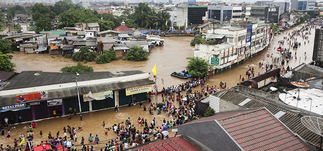 Giacarta è periodicamente soggetta a questo tipo di inondazioni: solitamente si verificano in concomitanza con il passaggio del monsone asiatico, che porta in pochi giorni piogge molto copiose. Sebbene queste condizioni meteorologiche siano ricorrenti, nel corso degli anni le amministrazioni locali non hanno reso più sicura la città e non sono riuscite a limitare il rischio di gravi disagi per la popolazione. Le alluvioni sono rese più frequenti anche dalla deforestazione delle colline a sud di Giacarta e dalla costruzione, caotica e male organizzata, delle nuove aree urbane che sottraggono suolo naturale in grado di assorbire le precipitazioni e portano alla deviazione dei corsi d’acqua. La presenza di discariche, spesso abusive, lungo i fiumi della zona peggiora ulteriormente le cose: durante le piene si formano dighe di rifiuti che impediscono all’acqua di defluire normalmente.
