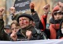 La mattina di domenica 19 gennaio, dopo settimane di grandi proteste contro il rafforzamento dei rapporti politici e commerciali con la Russia, più di 100mila persone hanno manifestato a Kiev, in Ucraina, contro alcune nuove leggi approvate la scorsa settimana dal governo del presidente Viktor Yanukovich; in base ad esse sarà possibile punire chiunque organizzi qualsiasi tipo di manifestazione pubblica non autorizzata o anche semplicemente fornisca gli strumenti e i materiali necessari per farlo.