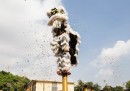 Le strade vengono decorate con lanterne e festoni rossi, ci sono danze di artisti travestiti da draghi o leoni e poi spettacolari fuochi d’artificio che in molte città peggiorano i livelli di inquinamento dell’aria, già molto elevati. Le persone si vestono di rosso – il colore del fuoco, considerato di buon auspicio – si regalano ai bambini banconote, meglio se nuove, in buste rosse, e a mezzanotte si aprono porte e finestre per far uscire l’anno vecchio e accogliere quello nuovo. Per molti cinesi il Capodanno è anche un evento molto costoso: il 79 per cento di loro dice di spendere in media più dello stipendio mensile. Oltre che in Cina, il nuovo anno viene festeggiato anche a Hong Kong, Singapore, Taiwan, Vietnam, Thailandia, Indonesia, Malesia – e in tutte le grandi comunità di cinesi emigrati, come a Londra e New York.