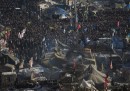 Intanto nel centro di Kiev alcune migliaia di persone continuano a manifestare contro il governo e contro Yanukovych. Secondo la stampa locale nell’ultimo fine settimana una delegazione di manifestanti avrebbe incontrato Aleksand Yakimenko, il capo dei servizi di sicurezza ucraini, e Viktor Dubovik, viceministro degli Interni. Avrebbero concordato lo sgombero di alcuni edifici pubblici occupati da mesi e la rimozione delle barricate, a patto che prima siano liberati i manifestanti arrestati nel corso degli scontri di piazza. Non è chiaro se il patto sia stato formalizzato in qualche modo, né se le condizioni potranno essere raggiunte e mantenute dalle due parti nei prossimi giorni. Molti manifestanti sono contrari, perché la rimozione delle barricate li esporrebbe agli attacchi della polizia e porterebbe probabilmente allo sgombero con la forza delle manifestazioni.