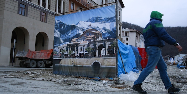La colazione è disponibile all’edificio numero 10. Ma non solo l’edificio 10 è difficile da trovare: non c’è nessuna traccia che contenga un ristorante. Il posto, che non ha un nome, è così nascosto e anonimo che a confronto i bar sotterranei degli hipster di Brooklyn sembrano cercare disperatamente un po’ di attenzione. Ti accorgi di essere nel posto giusto solo quando, dopo diversi giri intorno alla costruzione, vedi una donna in grembiule attraverso una delle finestre. Entrando vedi un uomo su una scala che aggiusta qualcosa. È una vista comune: ritocchi dell’ultimo minuto sono stati parte delle olimpiadi più o meno da quando esistono i cacciavite. Ma la lista a Sochi sembra straordinarimente lunga. Ovunque ci sono scatole e scatole di condizionatori, stufette e altre cose essenziali ancora imballate e sigillate.