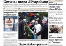 Il Presidente della Repubblica Napolitano è in apertura su tutti i giornali di oggi con due notizie che lo riguardano: l’incontro di ieri sera con il segretario del PD Renzi, nel quale si è parlato del futuro del governo Letta, e le anticipazioni pubblicate dal Corriere della Sera di un libro di Alan Friedman secondo il quale Napolitano incontrò Monti per sostituire Berlusconi alla guida del governo nel giugno 2011, quattro mesi prima delle effettive dimissioni di Berlusconi. Su questo il Presidente della Repubblica risponde oggi con una lettera al Corriere della Sera, mentre i giornali legati al centrodestra chiedono le sue dimissioni.