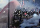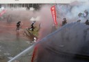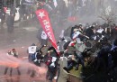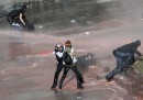 Giovedì 13 febbraio si è tenuta ad Ankara, la capitale della Turchia, una manifestazione di un centinaio di persone che è finita sui siti di news di mezzo mondo. La manifestazione era stata organizzata per chiedere la scarcerazione di alcuni militari accusati dal governo di avere pianificato un colpo di stato. A un certo punto, e in maniera del tutto inaspettata, un poliziotto turco in tenuta anti-sommossa ha usato un idrante contro una giornalista televisiva turca che stava raccontando la protesta: al posto dell’acqua, però, il cannone era stato riempito con un liquido rosso, presumibilmente una sostanza irritante al peperoncino, come hanno raccontato molti testimoni.