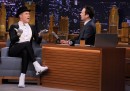 Jimmy Fallon ha aperto la prima puntata del suo nuovo programma con il tradizionale monologo introduttivo, usando diversi minuti per presentarsi al pubblico e ringraziare per l’opportunità di condurre un programma così importante. In molti hanno notato come il tono e i modi usati da Fallon – che è stato molto pacato e ha cercato di non sembrare arrogante – sono stati probabilmente motivati dalla volontà di non inimicarsi il pubblico affezionato allo stile di Jay Leno.