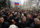 In Crimea, invece, la penisola ucraina sulla costa settentrionale del Mar Nero amministrata dalla Repubblica autonoma di Crimea, l’atmosfera è stata completamente diversa. Mentre a Kiev veniva rimossa la stella sovietica dall’edificio del parlamento – simbolo di una vecchia e ancora forte influenza – nelle città della Crimea si firmavano petizioni per creare milizie pro-russe e si issavano bandiere sulle statue di Lenin ancora in piedi (nel resto dell’Ucraina sono state abbattute quasi tutte, negli ultimi mesi). Da quando le opposizioni a Yanukovych hanno preso il controllo di Kiev e hanno cominciato a votare una serie infinita di importanti provvedimenti al parlamento, in Crimea ci sono state diverse manifestazioni contro i manifestanti della capitale – principalmente di orientamento europeista e nazionalista – e a favore della Russia. A Sebastopoli oltre 2 milioni di persone sono etnicamente russe: qui, dove si trova una base navale russa che ospita circa 25mila soldati, lunedì c’è stata l’ennesima grande manifestazione di fronte all’amministrazione locale per chiedere l’approvazione di un cittadino russo come sindaco della città.