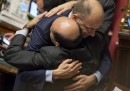 Bersani applaudito e abbracciato, "L'arte di correre" di Haruki Murakami sul banco di Renzi, qualcuno si stiracchia e qualcun altro gioca con l'iPad