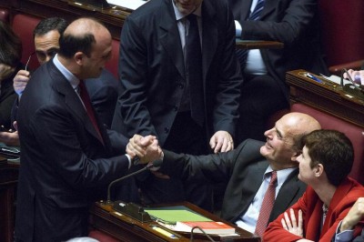 Martedì 25 febbraio il governo Renzi ha ottenuto la fiducia alla Camera con 378 favorevoli, 220 contrari, un astenuto. Dal punto di vista fotografico ci sono stati due momenti particolarmente interessanti e cercati: il ritorno in aula di Bersani dopo il grave malore di gennaio, e quello dell’ex presidente del Consiglio Enrico Letta. E poi il solito: facce sonnacchiose qua e là, qualcuno che ascolta attento, qualcun altro che gioca con l’iPad.