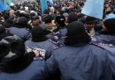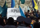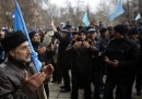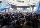 A Simferopoli si trova la sede del parlamento della repubblica autonoma di Crimea. Mercoledì mattina è stata convocata una sessione di emergenza per discutere della difficile situazione che si è venuta a creare in Crimea negli ultimi giorni: dopo l’allontanamento di Yanukovych e del suo governo, e la presa del potere a Kiev delle opposizioni nazionaliste e pro-europeiste, in questa parte di Ucraina sono cresciute le tensioni tra gli abitanti russi – la maggior parte della popolazione della Crimea – e gli ucraini, in particolare i tatari (musulmani) che si oppongono a qualsiasi ipotesi di passaggio della repubblica autonoma alla Russia. Entrambe le fazioni si sono ritrovate di fronte al parlamento, e dopo ore di tensioni sono iniziati i primi scontri, anche se piuttosto limitati. Una persona è morta per un attacco di cuore mentre ci sono stati diversi feriti dalla parte russa. La sessione parlamentare invece è stata sospesa e poi cancellata.