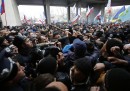 Giovedì mattina diversi uomini armati sono entrati nell’edificio del parlamento di Crimea, a Simferopoli (capitale della repubblica autonoma di Crimea, nell’Ucraina meridionale) e si sono barricati dentro senza fare richieste e senza rispondere alle domande di giornalisti e alle chiamate della polizia. Si tratta di un gruppo di pro-russi – quindi di abitanti della Crimea che vorrebbero che la repubblica autonoma tornasse a far parte della Russia, staccandosi dall’Ucraina – che una volta dentro all’edificio hanno issato sul tetto una bandiera russa. L’occupazione del parlamento – ancora in corso – è arrivata il giorno dopo un’altra giornata molto agitata per la politica ucraina, per diverse ragioni: sempre a Simferopoli si sono susseguiti per tutta la mattina tensioni e tafferugli tra i gruppi pro-Europa e quelli pro-Russia; a Kiev sono state prese nuove e importanti decisioni per il futuro del governo; infine la Russia ha annunciato un’esercitazione militare non programmata delle sue truppe vicino al confine ucraino, una mossa considerata una dimostrazione di forza rispetto alle tensioni di questi ultimi giorni nelle zone orientali dell’Ucraina e in Crimea.