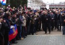 Venerdì mattina centinaia di uomini armati con uniformi simili a quelle dell’esercito russo – ma senza alcun altro segno distintivo – hanno preso il controllo dei due principali aeroporti della Crimea – repubblica autonoma meridionale dell’Ucraina a maggioranza russa – quello di Sebastopoli (militare) e quello di Simferopoli (civile). Il ministro degli Interni ucraino ad interim, Arsen Avakov, ha attribuito l’azione a forze militari russe, anche se rimangono molti dubbi sull’identità e appartenenza di queste milizie. Russia Today dice che gli uomini che hanno preso il controllo degli aeroporti sono vestiti e equipaggiati in modo simile alle milizie di autodifesa che ieri avevano occupato gli edifici del parlamento e del governo locale a Simferopoli, mentre la stessa Russia ha smentito qualsiasi coinvolgimento. Dopo diverse ore la situazione in Crimea è ancora molto confusa, anche se sembra che le autorità ucraine abbiano ripreso il controllo dei due aeroporti. Nuove manifestazioni pro-russe si sono tenute però a Simferopoli, di fronte alla sede del governo locale, e una colonna di blindati russi è stata fotografata mentre si muoveva in Crimea verso Sebastopoli.