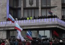 16.27 – A Donetsk, nell’Ucraina orientale, circa 2000 manifestanti pro-russi sono riusciti a rientrare nell’edificio del governo regionale, dopo essere stati cacciati questa mattina dalla polizia ucraina. La giornalista del Guardian, Harriet Salem, ha raccontato che la folla urlava “Berkut, Berkut” e “Russia, Russia”, e sono state fatte passare dagli altoparlanti canzoni di epoca sovietica (qui sotto una foto precedente di qualche ora fa, quando la polizia aveva ripreso il controllo dell’edificio).