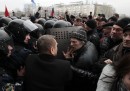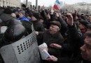 12.53 – Christopher Miller, giornalista di Kiev Post, ha pubblicato un video su Youtube girato oggi nei pressi di una base militare ucraina a Simferopoli, la capitale della Crimea. Miller ha raccontato che un gruppo di 50 uomini con bandiere russe e cartelli pro-russi ha attaccato delle donne – in atteggiamenti pacifici – che erano arrivate lì per protestare contro l’occupazione russa, tenendo in mano dei cartelli con scritto: «Amore, pace per tutti» e «Amate l’Ucraina? Allora smettetela!». Gli aggressori hanno strappato i cartelli, hanno spinto le donne e alcuni dei loro mariti e figli nel traffico. La polizia che si trovava nelle vicinanze, ha scritto Miller, non è intervenuta.