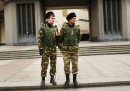 Due giorni fa Spencer Platt è arrivato in Crimea, e queste sono alcune tra le fotografie che sono già state diffuse da Getty Images: come spesso accade per i fotografi che viaggiano molto, le immagini riflettono quel momento in cui si arriva in un posto che non si conosce e si cominciano a scattare foto in giro, all’inizio senza riferimenti precisi. Tra queste, per esempio, ci sono molte fotografie scattate dal treno; e poi altre che mostrano soldati (che non combattono), carriarmati (ma fermi), bandiere russe e, naturalmente, persone.