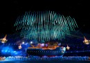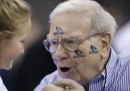 Tra le migliori foto sportive della settimana ce ne sono parecchie di persone molto famose. Come quella dei tennisti Andy Murray e Novak Djokovic che si fanno un selfie durante una partita, oppure quella del finanziere Warren Buffett con la faccia coperta di adesivi della sua squadra di basket preferita. Cambiando genere, c’è la foto di un incidente aereo avvenuto in Florida. Un piccolo aereo, pilotato da un veterano della Seconda guerra mondiale di 87 anni, ha colpito con un’ala il paracadute di un paracadutista sportivo che stava atterrando in quel momento. A causa dell’impatto il paracadutista è stato lanciato in aria mentre l’aereo si è avvitato su sé stesso per poi schiantarsi al suolo. L’incidente non ha avuto conseguenze troppo gravi e sia il pilota che il paracadutista hanno riportato soltanto ferite leggere. Per finire: cani da slitta, tantissimi body-builder e un gigantesco messaggio di ringraziamento per Brian O’Driscoll, celebre giocatore irlandese di rugby che questa settimana ha giocato la sua ultima partita in casa con la maglia della nazionale.